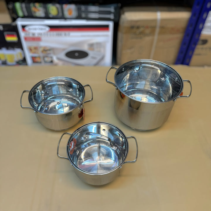 High-quality stainless steel 5-layer thermal bottom Quick heating & heat retention Compatible with all cooktops Healthy cooking with minimal water/fat Ideal for diet-friendly meals Practical pouring rim, no drips Cool-touch handles for safety Practical, attractive design