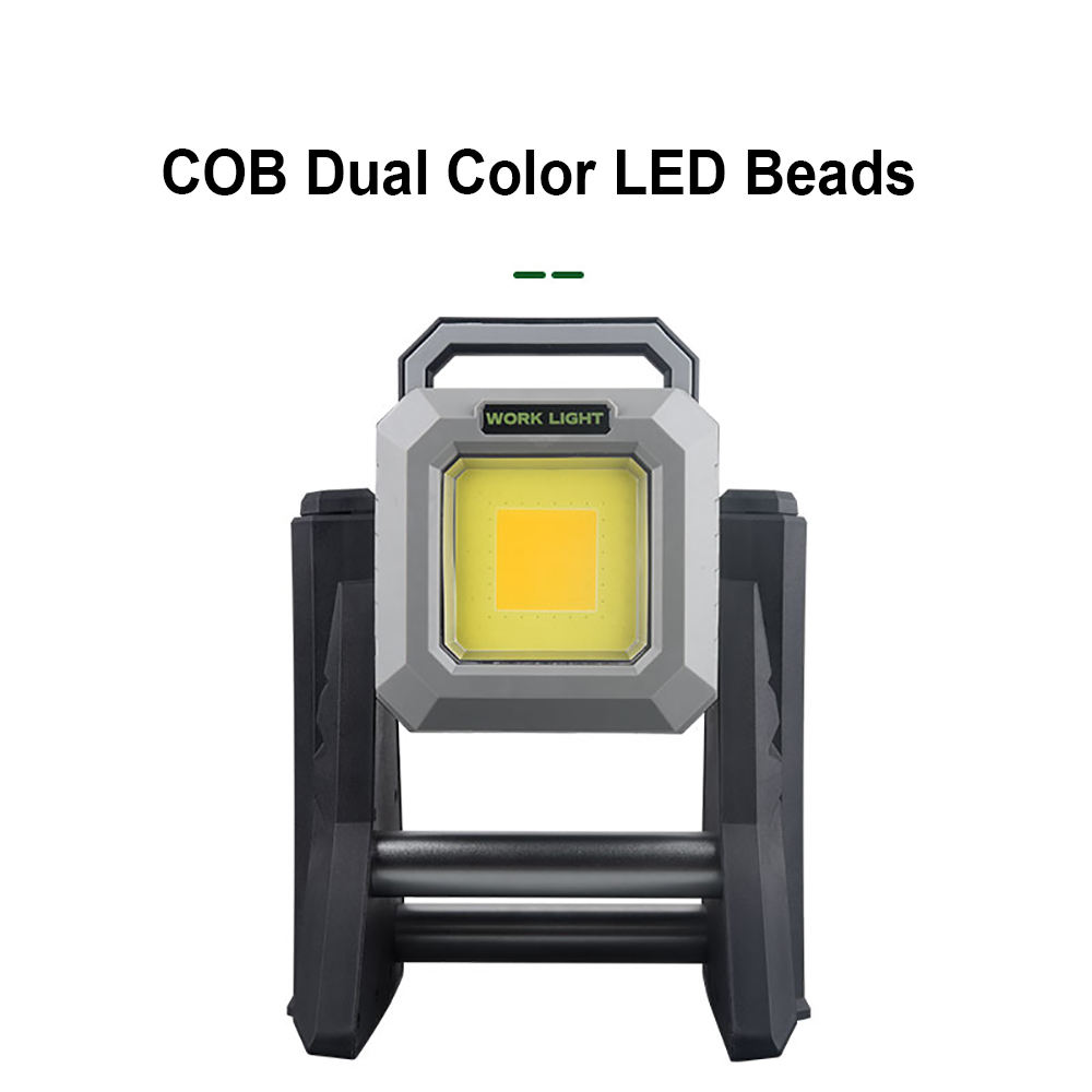The work light is made to be handheld and portable with a stretchable mount. The lamp can rotate 360 degrees to create a stand that can be placed on a table or the ground thanks to a high stretchy bracket.