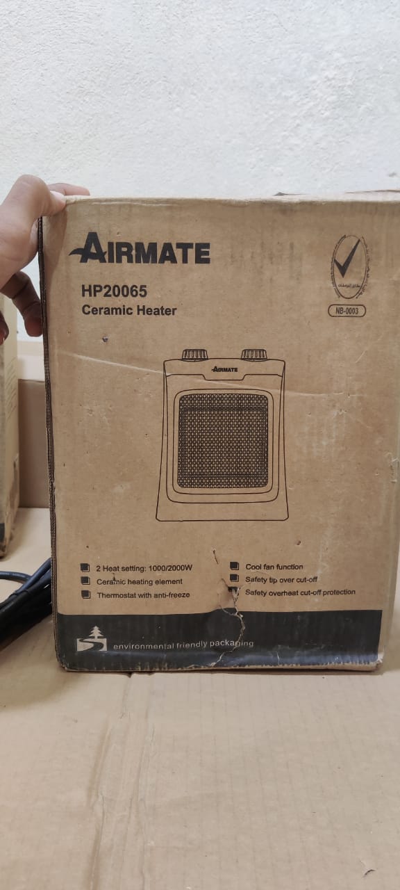 Brand : AIRMATE 2000W Power 2 Heating Setting : 1000/ 2000W Ceramic Heating Element Thermostate with anti-freeze Cool Fan Function Safty tip Over cut-Off Safety Overheat cut-off Protection High Standard Quality