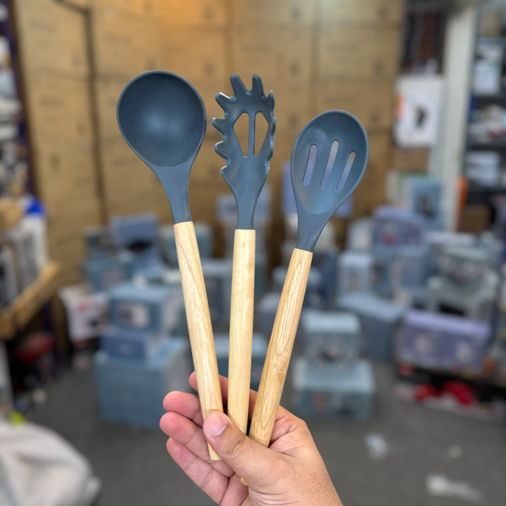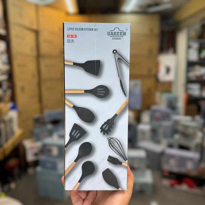 Complete 12-piece kitchen utensil set Includes spoon, spatula, turner, ladle & more High-quality, heat-resistant silicone heads Non-stick & scratch-safe for all cookware Durable handles with comfortable grip Comes with holder for easy organization Perfect for cooking, baking & serving needs